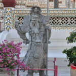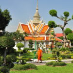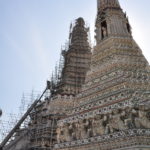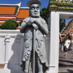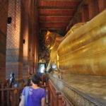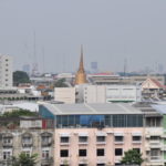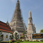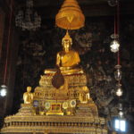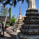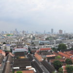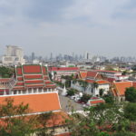 Unser Ho(s)tel lag ein bisschen ausserhalb vom Zentrum, aber in der Nähe von “Wat Arun”, einem der bekannten Tempel von Bangkok. Gleich beim Tempel war auch eine Fähre, mit welcher man den Fluss überqueren konnte, und so ins Zentrum von Bangkok kam. “Zentrum” ist vielleicht der Falsche Ausdruck dafür, Bangkok ist riesig und es handelte sich bei diesem Stadtteil vor allem um denjenigen für Touristen. Die Backpackerstrasse liegt hier, der königliche Palast und natürlich “Wat Pho”, der Tempel mit dem liegenden Buddha. Wir haben den königlichen Palast ausgelassen. Einerseits war der Eintritt ein bisschen teuer, andererseits hatte es einige Benefizveranstaltungen rum um den Palast in Gedenken an den verstorbenen König. Sightseeing kam uns in diesem Fall ein bisschen seltsam vor und wir beschränkten uns auf die Tempel, den Fluss und die Stadt als solches. Neben den oben erwähnten Tempel haben wir noch “Wat Saket” besucht, welcher sich auf einem weissen oder silbrigen Hügel befindet.