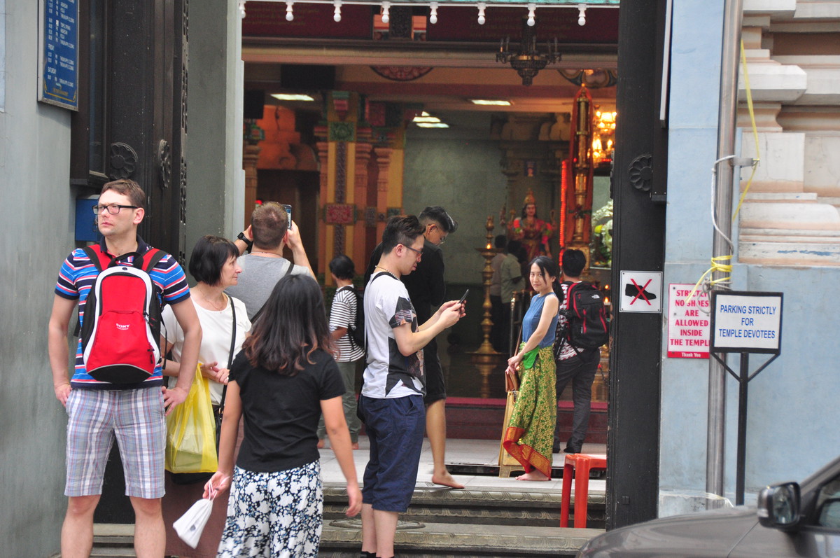 Neben Chinatown wollten wir auch Little India anschauen. Anstatt 45 Minuten zu Fuss bei über 30°C durch die Stadt zu laufen haben wir es wie die Einheimischen gemacht und ein Taxi bzw. Uber bestellt. Wenn man in Little India ankommt, scheint es als würde man in ein anderes Land kommen. Die Leute tragen andere Kleider, die Häuser sehen anders aus, es gibt überall indisches Essen und Hinduistische Tempel. Zwei Strassen weiter ist dann wieder alles Normal.