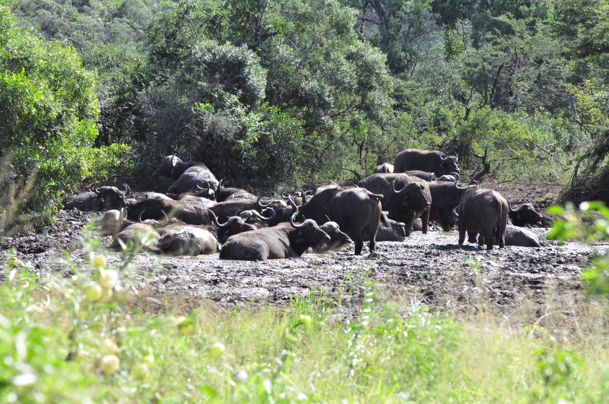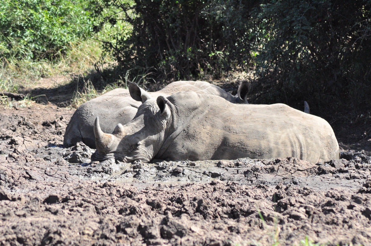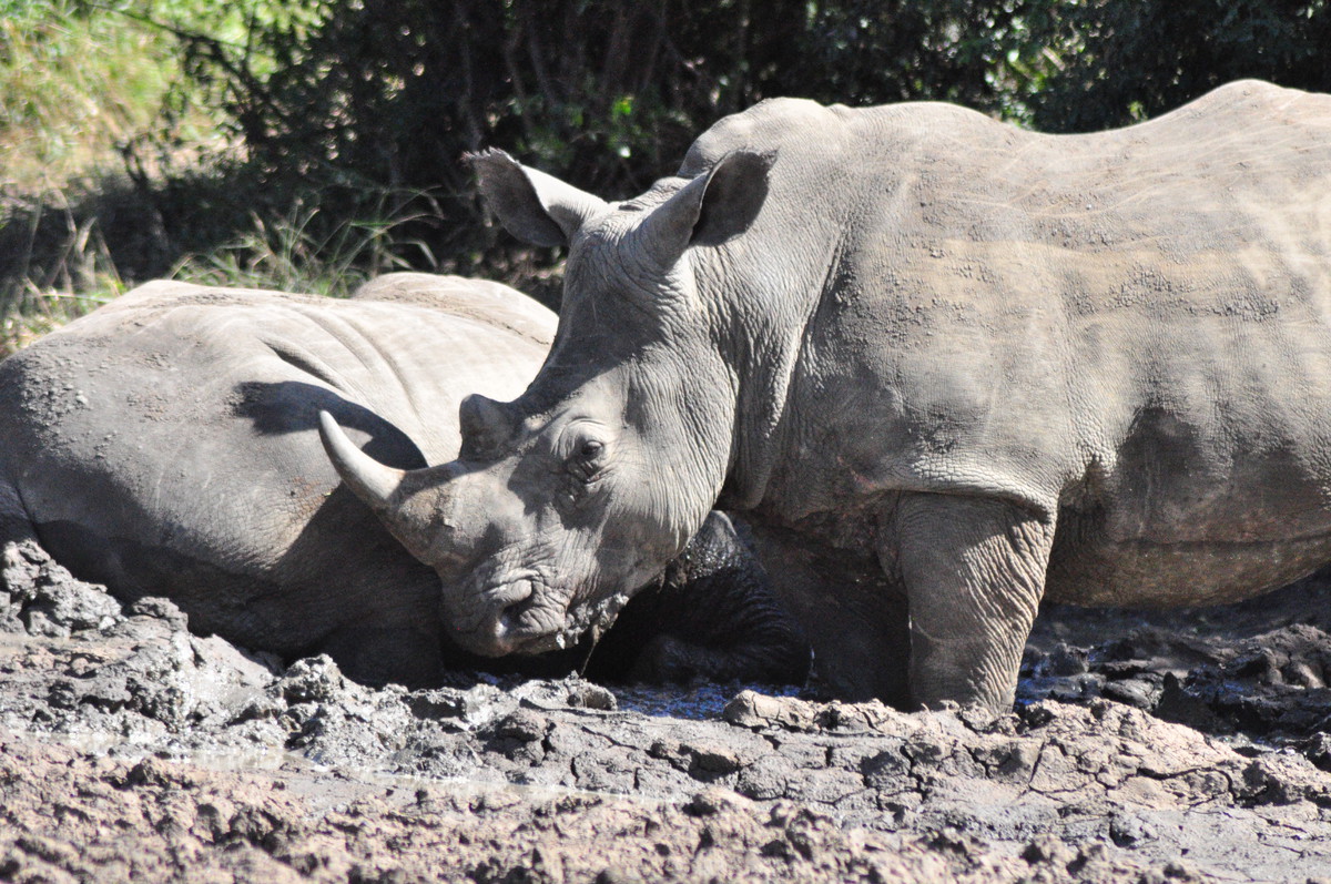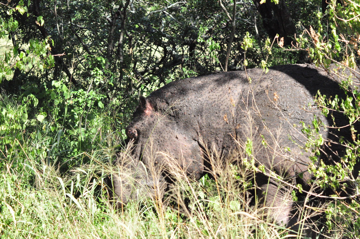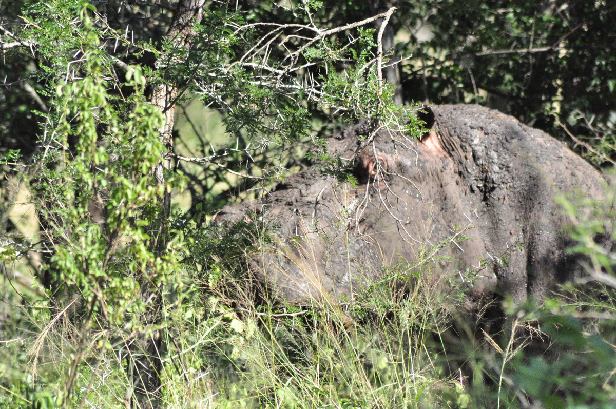 Ein weiteres Naturschutzgebiet liegt nur wenige Kilometer landeinwärts, der Hluhluwe-iMfalozi-Park. Hier verbringen wir einen weiteren Tag auf der Suche nach einem Leoparden, diesmal mit unserem eigenen Auto. Natürlich finden wir auch hier keinen Leoparden, dafür können wir Nilpferde beim Schlammbad beobachten und ein Flusspferd auf der Such nach seinem nächsten Bad.