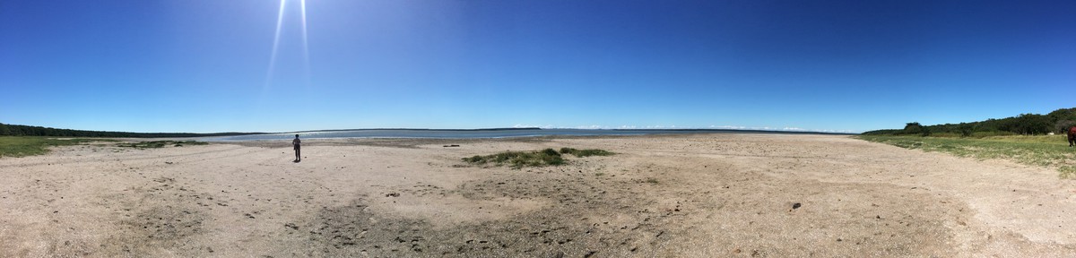 Nachdem wir einen Tag lang die faszinierende Umgebung der riesigen Farm erkundet haben, machen wir Tags darauf einen dreistündigen Ausritt mit zwei Parkwächtern in den iSimangaliso Wetland Park der direkt über die Strasse liegt. Auch hier gibt es keine Elephanten und Nilpferde, dafür verschiedene Antilopenarten wie Impalas und Nyalas. Ebenso spannend ist das Aufeinandertreffen von Fluss und Meer und die einzigartige Marschlandschaft die dabei gebildet wird. Wir lernen, dass es hier auch Wildschweine und Leoparden gibt, die auch auf das Gelände der Farm kommen. Wir sehen dann auch tatsächlich ein Wildschwein aber vom Leopard finden wir nur Pfotenabdrücke im Sand.