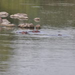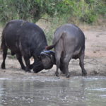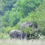Man kann sich das Fahren durch den Park so ähnlich vorstellen wie ein Spaziergang in der Masoalahalle. Wenn man zügig durchgeht sieht man nichts, ausser es hat irgendwo ein Tier am Weg, dann hat es eine riesen Traube von Besuchern die den Weg versperren. Bewegt man sich jedoch langsam und macht ab und zu eine Pause sieht man jede Menge kleine und grössere Tiere. Das selbe gilt im Park. Auf den Teerstrassen sieht man einige Tiere, aber je langsamer man fährt, desto grösser die Chance, dass man etwas sieht. Ausserdem wird man extrem müde wenn man während Stunden konzentriert in den Busch starrt um Tiere zu finden. Wir hatten uns deshalb auf die Schotterpisten konzentriert und sind meist so zwischen 10 und 30 km/h gefahren. Bei jedem Wasserloch und Aussichtspunkt sind wir kurz rausgefahren und haben uns umgeschaut. Oftmals sind zwar Wasserlöcher eingezeichnet, sie führen aber nicht unbedingt Wasser. Welche Löcher Wasser führen scheint von den “Regenmustern” abzuhängen, welche sich ändern. Es braucht eine Weile bis man weiss wo man auf was achten muss, dass man die Tiere sieht. Ausserdem kann es eine Frage von ein paar Minuten sein ob man Tiere sieht oder nicht. Die grosse Elefantenherde braucht nicht lange um die Strasse zu überqueren, ist enorm eindrücklich, aber unsichtbar sobald sie hinter den Büschen und Bäumen verschwindet. Dasselbe gilt für die Wasserbüffel am Wasserloch. Sie beiben vielleicht eine Viertelstunde dort und verschwinden dann wieder im Busch.