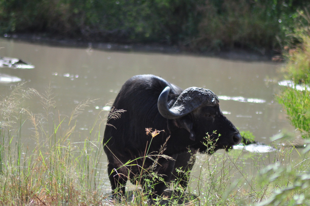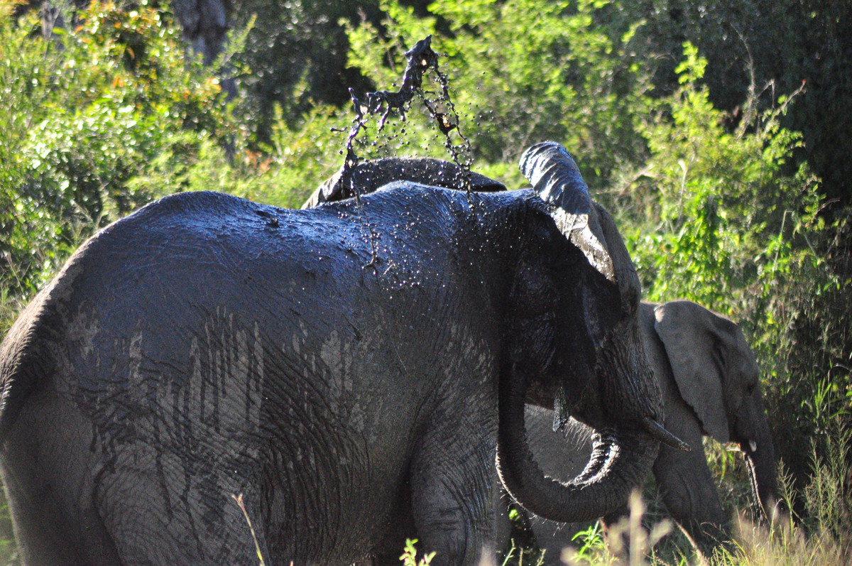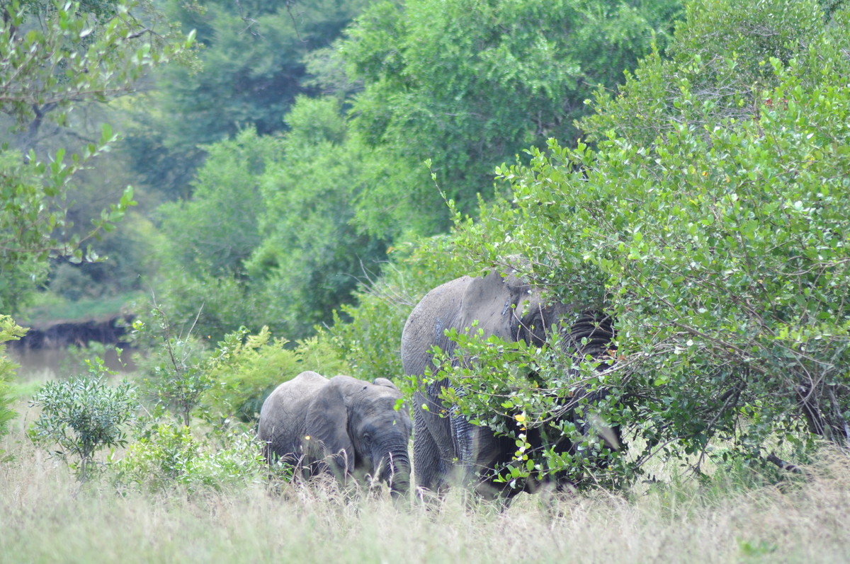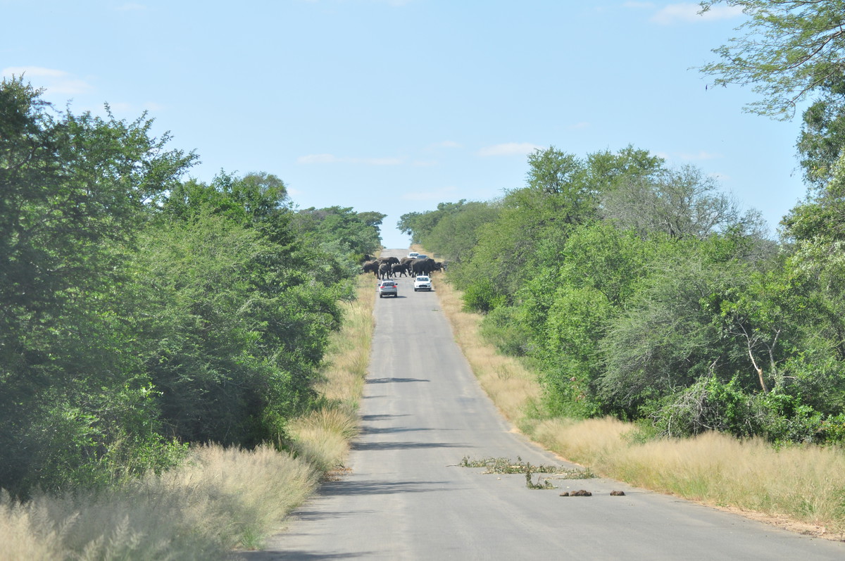 Man kann sich das Fahren durch den Park so ähnlich vorstellen wie ein Spaziergang in der Masoalahalle. Wenn man zügig durchgeht sieht man nichts, ausser es hat irgendwo ein Tier am Weg, dann hat es eine riesen Traube von Besuchern die den Weg versperren. Bewegt man sich jedoch langsam und macht ab und zu eine Pause sieht man jede Menge kleine und grössere Tiere. Das selbe gilt im Park. Auf den Teerstrassen sieht man einige Tiere, aber je langsamer man fährt, desto grösser die Chance, dass man etwas sieht. Ausserdem wird man extrem müde wenn man während Stunden konzentriert in den Busch starrt um Tiere zu finden. Wir hatten uns deshalb auf die Schotterpisten konzentriert und sind meist so zwischen 10 und 30 km/h gefahren. Bei jedem Wasserloch und Aussichtspunkt sind wir kurz rausgefahren und haben uns umgeschaut. Oftmals sind zwar Wasserlöcher eingezeichnet, sie führen aber nicht unbedingt Wasser. Welche Löcher Wasser führen scheint von den “Regenmustern” abzuhängen, welche sich ändern. Es braucht eine Weile bis man weiss wo man auf was achten muss, dass man die Tiere sieht. Ausserdem kann es eine Frage von ein paar Minuten sein ob man Tiere sieht oder nicht. Die grosse Elefantenherde braucht nicht lange um die Strasse zu überqueren, ist enorm eindrücklich, aber unsichtbar sobald sie hinter den Büschen und Bäumen verschwindet. Dasselbe gilt für die Wasserbüffel am Wasserloch. Sie beiben vielleicht eine Viertelstunde dort und verschwinden dann wieder im Busch.