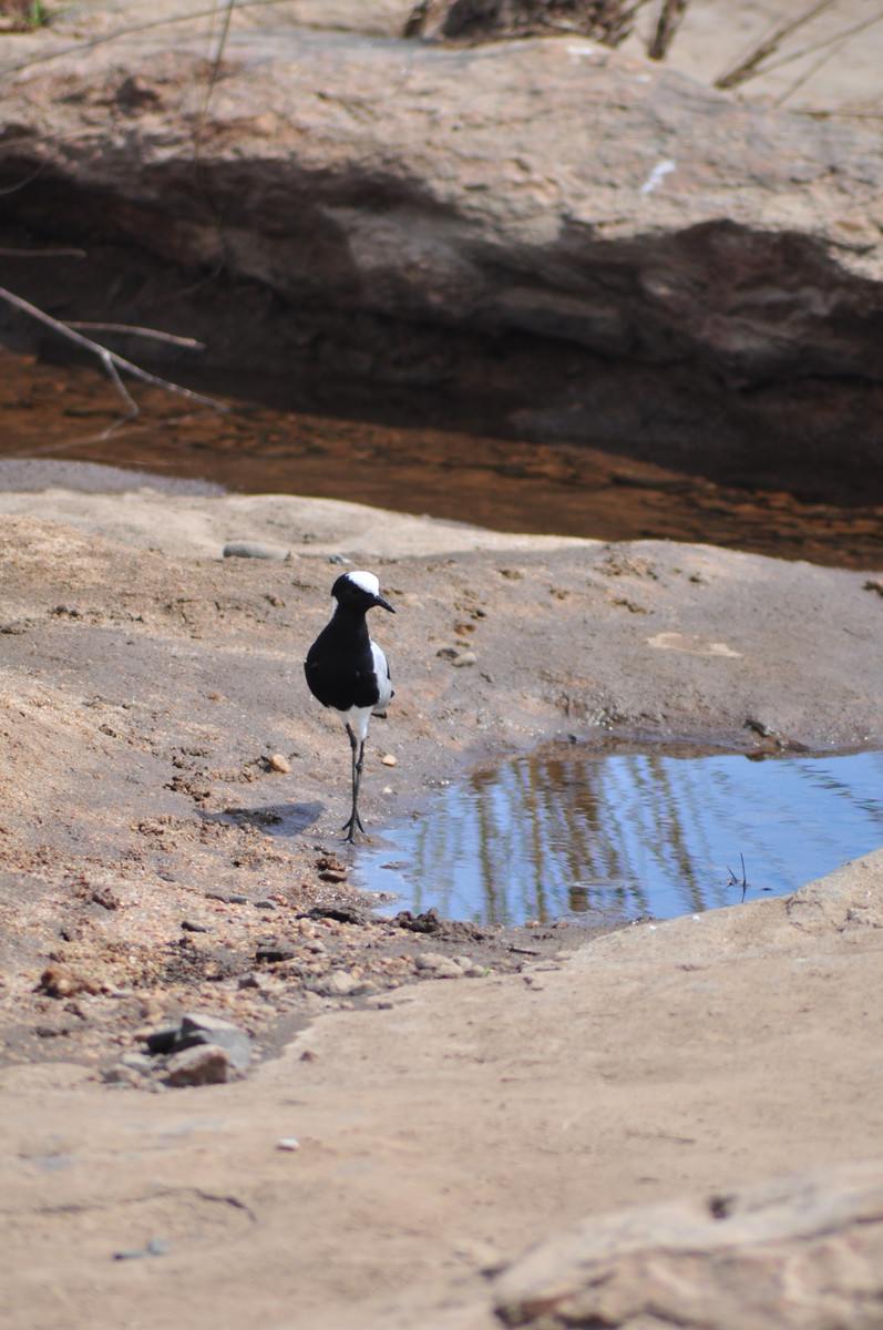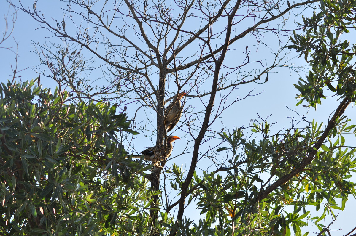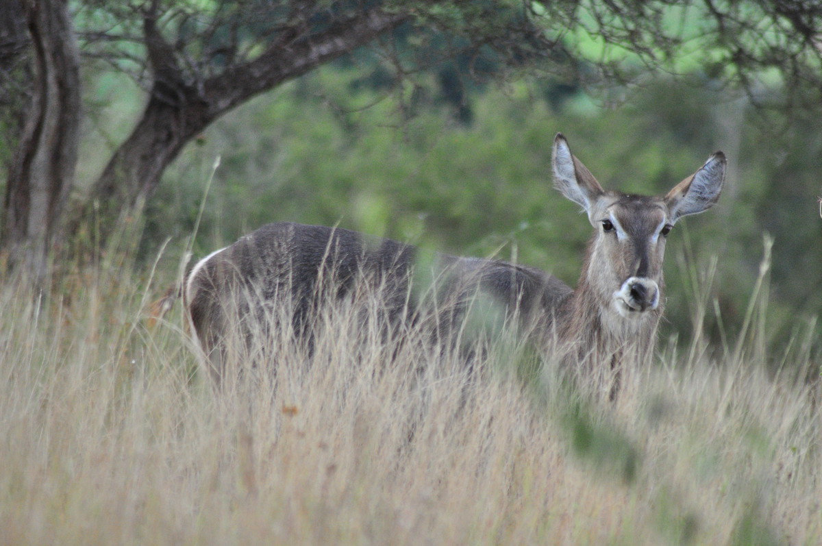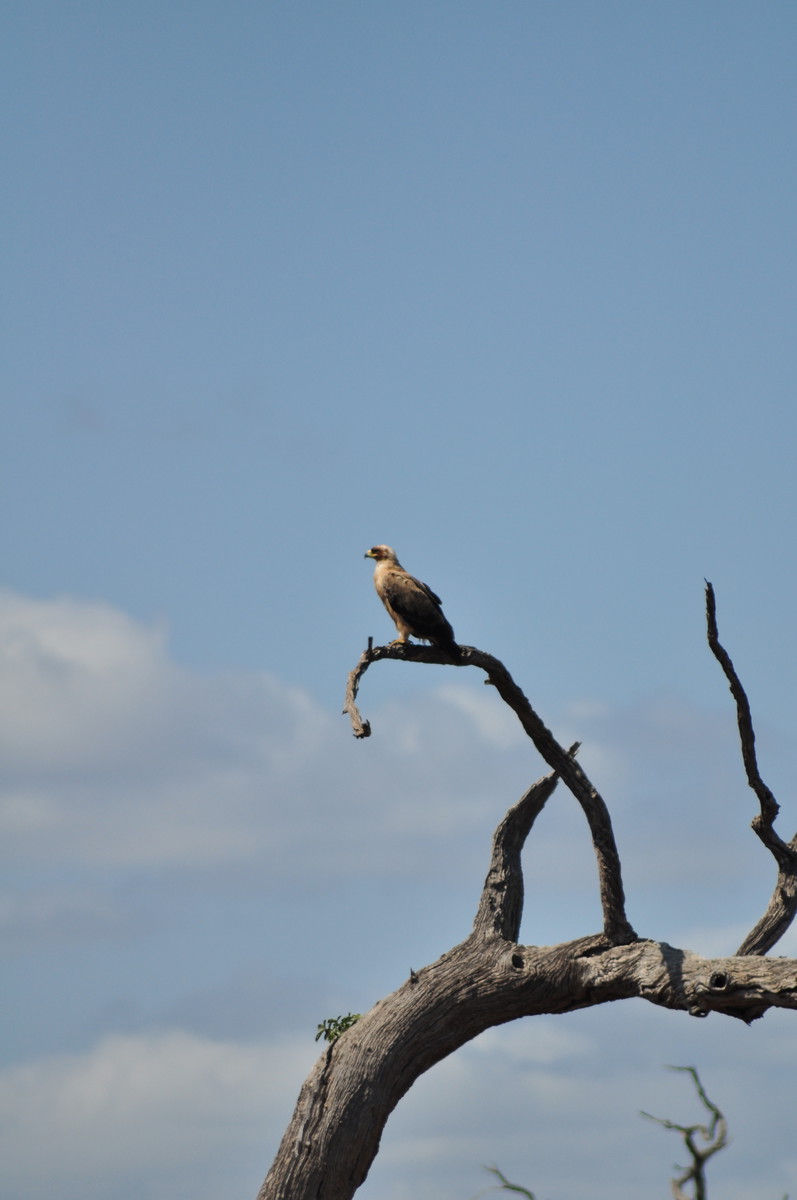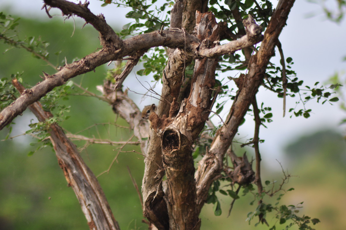 Man kann sich das Fahren durch den Park so ähnlich vorstellen wie ein Spaziergang in der Masoalahalle. Wenn man zügig durchgeht sieht man nichts, ausser es hat irgendwo ein Tier am Weg, dann hat es eine riesen Traube von Besuchern die den Weg versperren. Bewegt man sich jedoch langsam und macht ab und zu eine Pause sieht man jede Menge kleine und grössere Tiere. Das selbe gilt im Park. Auf den Teerstrassen sieht man einige Tiere, aber je langsamer man fährt, desto grösser die Chance, dass man etwas sieht. Ausserdem wird man extrem müde wenn man während Stunden konzentriert in den Busch starrt um Tiere zu finden. Wir hatten uns deshalb auf die Schotterpisten konzentriert und sind meist so zwischen 10 und 30 km/h gefahren. Bei jedem Wasserloch und Aussichtspunkt sind wir kurz rausgefahren und haben uns umgeschaut. Oftmals sind zwar Wasserlöcher eingezeichnet, sie führen aber nicht unbedingt Wasser. Welche Löcher Wasser führen scheint von den “Regenmustern” abzuhängen, welche sich ändern. Es braucht eine Weile bis man weiss wo man auf was achten muss, dass man die Tiere sieht. Ausserdem kann es eine Frage von ein paar Minuten sein ob man Tiere sieht oder nicht. Die grosse Elefantenherde braucht nicht lange um die Strasse zu überqueren, ist enorm eindrücklich, aber unsichtbar sobald sie hinter den Büschen und Bäumen verschwindet. Dasselbe gilt für die Wasserbüffel am Wasserloch. Sie beiben vielleicht eine Viertelstunde dort und verschwinden dann wieder im Busch.