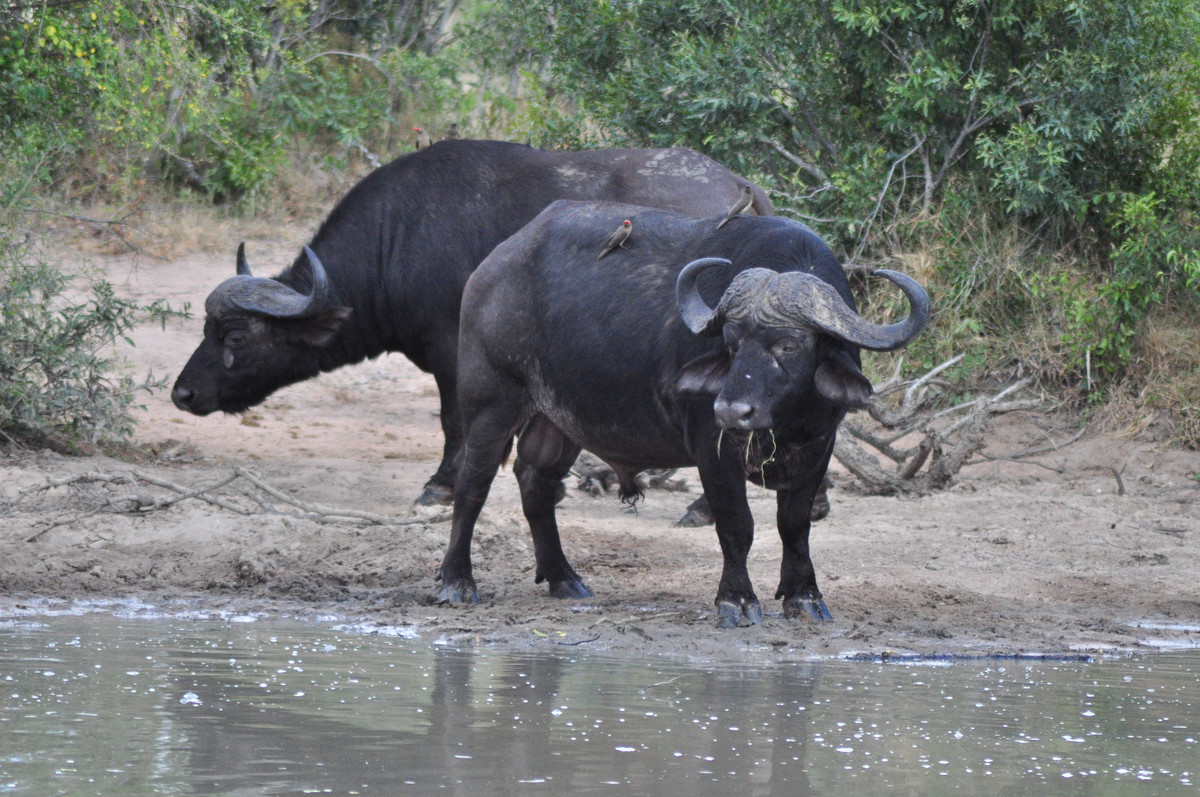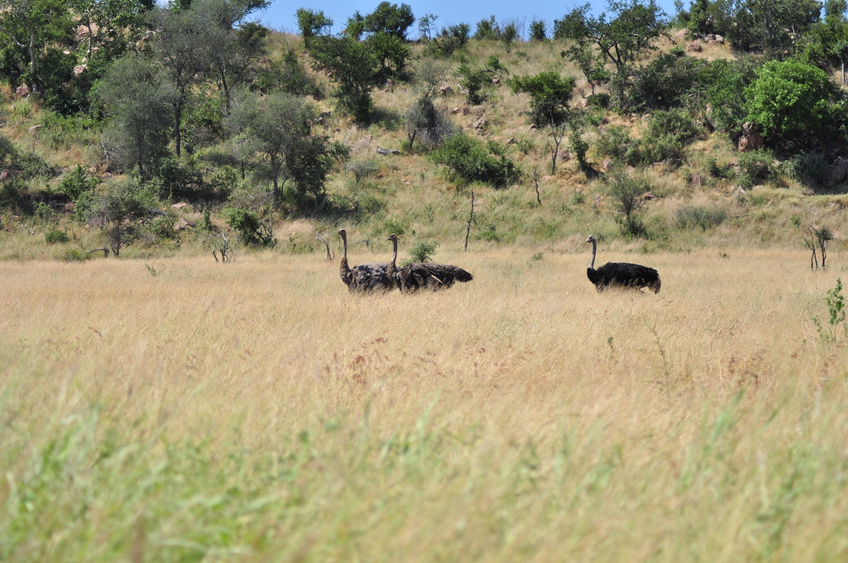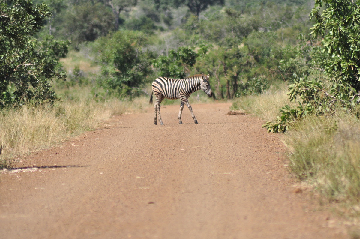 Der Kruger National Park ist einer der grössten Parks in Afrika und der grösste in Südafrika und umfasst eine Fläche von ca 19’000 km². Der Krugerpark gehört zum (geplanten?) Great Limpopo Transfrontier Park, welcher sich über Zimbabwe und Mozambique erstreckt und insgesamt ca 35’000 km² umfasst. Mittlerweilen wurden die Grenzzäune entfernt und es ist möglich Touren von Südafrika nach Mozambique zu machen, geländetaugliche Allradfahrzeuge, entsprechende Ausrüstung und Guides vorausgesetzt. Wir haben uns für die einfache Variante entschieden und haben den Park beim Phabeni Gate (in der Nähe von Hazyview) betreten und sind, meist auf Schotterpisten, abseits der geteerten Strassen, nach Satara hoch gefahren. Wir erreichten Satara beim Eindunkeln, pünktlich bevor die Tore geschlossen wurden und entschieden uns noch eine zusätzliche Nacht zu buchen. Satara war leider bereits ausgebucht, so mussten wir unseren Trip zum Olifantencamp wieder streichen. Anstatt eine zweite Nacht in Satara zu verbringen, entschieden wir uns für eine Nacht im Berg-en-Dal-Camp, ganz im Süden, in der Nähe eines der südlichen Gates. Am Anfang ein bisschen enttäuscht, dass wir weniger vom Norden sehen als gedacht, wurden wir dann aber früh morgens mit ein paar Nashörner, einer Hyäne und ein paar badenden Wasserbüffel entschädigt. Am Ende des letzten Tages verliessen wir dann den Park durch das Crocodile Bridge Gate.