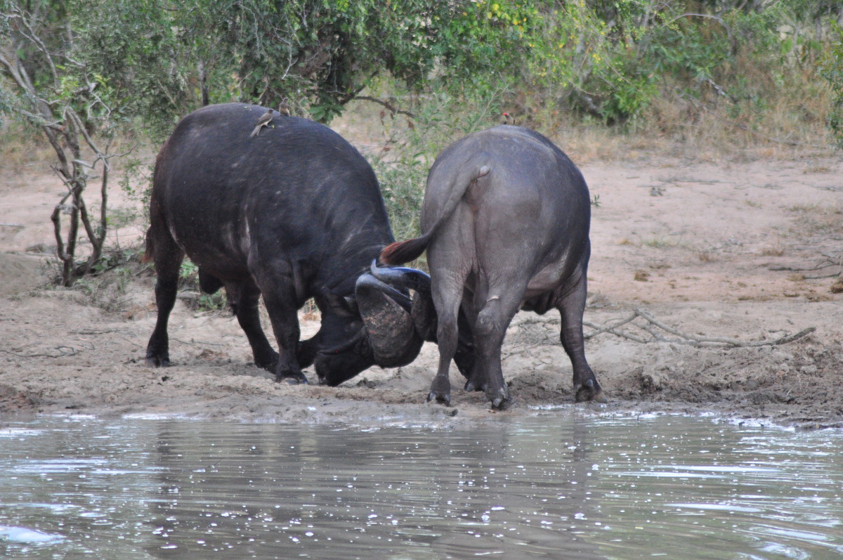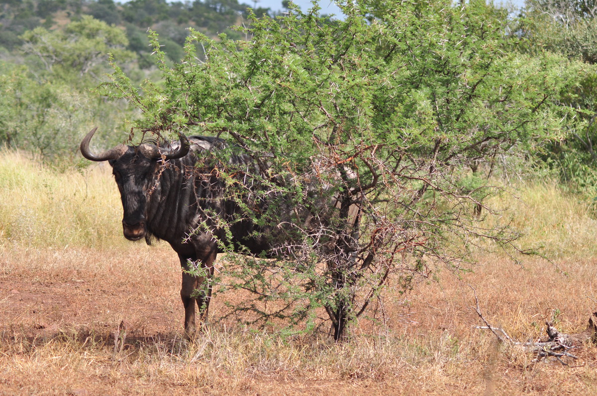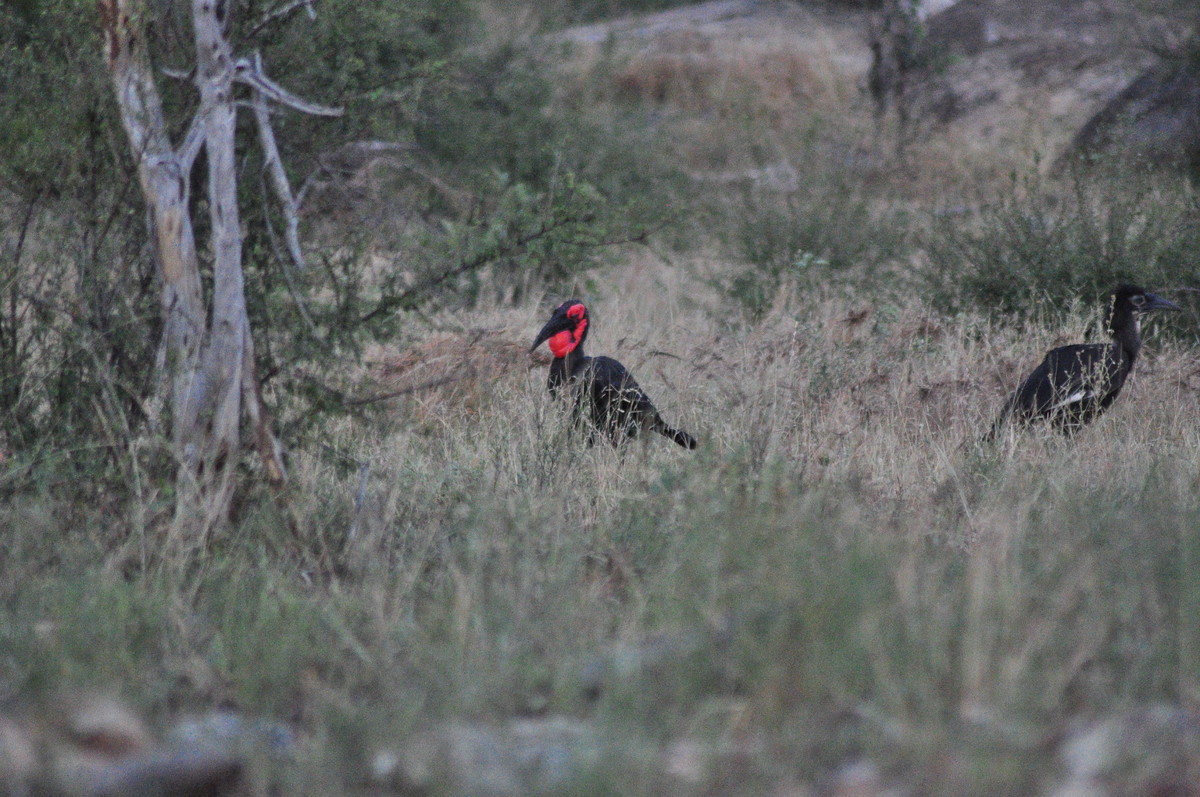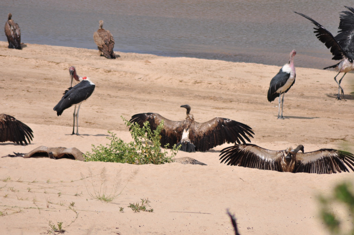 Der Kruger National Park ist einer der grössten Parks in Afrika und der grösste in Südafrika und umfasst eine Fläche von ca 19’000 km². Der Krugerpark gehört zum (geplanten?) Great Limpopo Transfrontier Park, welcher sich über Zimbabwe und Mozambique erstreckt und insgesamt ca 35’000 km² umfasst. Mittlerweilen wurden die Grenzzäune entfernt und es ist möglich Touren von Südafrika nach Mozambique zu machen, geländetaugliche Allradfahrzeuge, entsprechende Ausrüstung und Guides vorausgesetzt. Wir haben uns für die einfache Variante entschieden und haben den Park beim Phabeni Gate (in der Nähe von Hazyview) betreten und sind, meist auf Schotterpisten, abseits der geteerten Strassen, nach Satara hoch gefahren. Wir erreichten Satara beim Eindunkeln, pünktlich bevor die Tore geschlossen wurden und entschieden uns noch eine zusätzliche Nacht zu buchen. Satara war leider bereits ausgebucht, so mussten wir unseren Trip zum Olifantencamp wieder streichen. Anstatt eine zweite Nacht in Satara zu verbringen, entschieden wir uns für eine Nacht im Berg-en-Dal-Camp, ganz im Süden, in der Nähe eines der südlichen Gates. Am Anfang ein bisschen enttäuscht, dass wir weniger vom Norden sehen als gedacht, wurden wir dann aber früh morgens mit ein paar Nashörner, einer Hyäne und ein paar badenden Wasserbüffel entschädigt. Am Ende des letzten Tages verliessen wir dann den Park durch das Crocodile Bridge Gate.