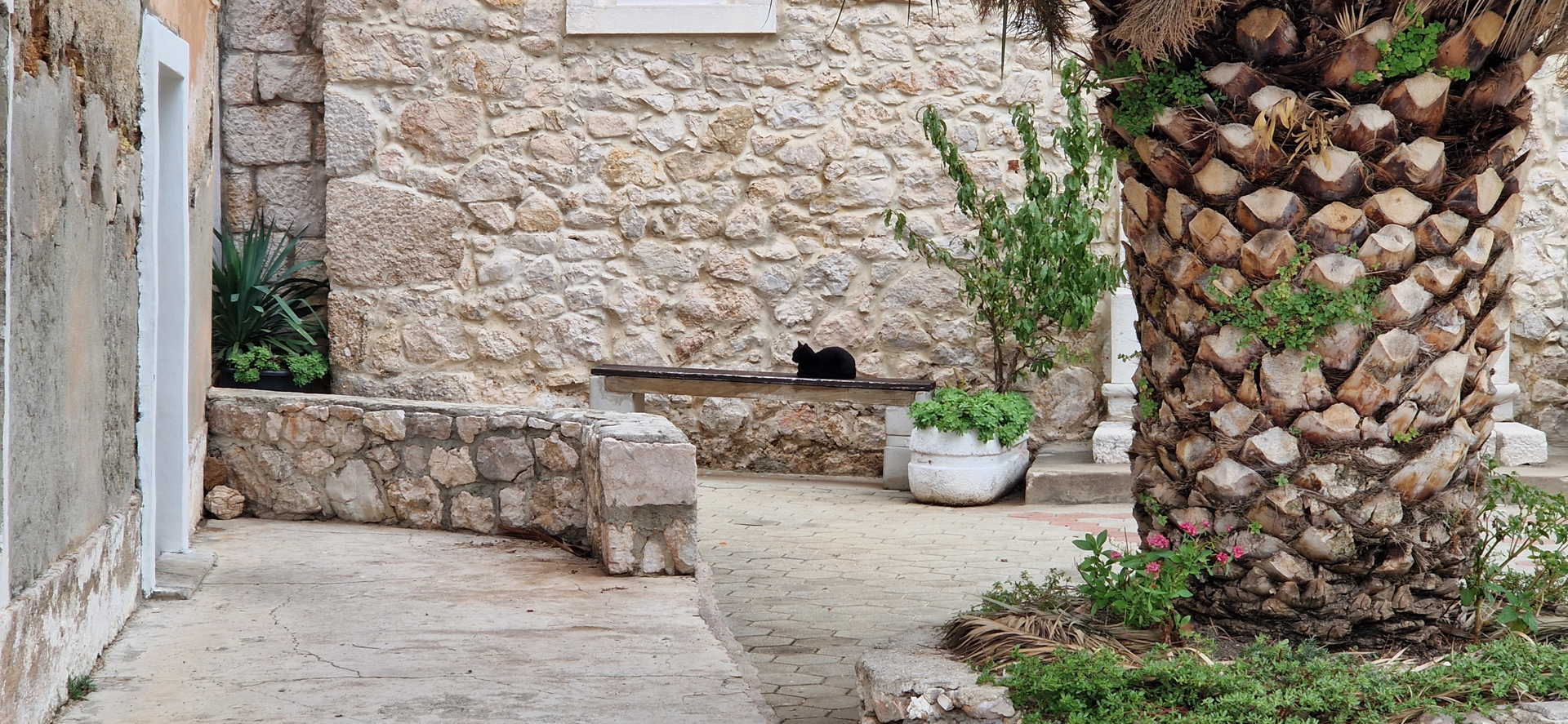 Nach einem gemütlichen Frühstück mit wunderbarer Aussicht auf die Adria, machen wir uns auf zu einer kurzen Wanderung. Ein steiniger Weg führt uns entlang der Steilküste und nach circa 30 Minuten erreichen wir Uvala Zavratnica. Zavratnica ist eine der bekanntesten und schönsten Buchten entlang der Kroatischen Küste und steht schon seit 1964 unter Naturschutz. Die Bucht ist 900 Meter lang, ziemlich schmal und der Eingang ist bloss 100 Meter breit. Der Ort ist eine beliebte Touristenattraktion aber komplett naturbelassen. Anfang Oktober sind ausser uns aber nur wenige Wanderer unterwegs.